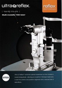 飛蚊症をYAGレーザーによって治療するという考えは、1980年代からありましたが、従来のYAGレーザーは、眼の前の方にある後嚢と虹彩切開術の治療を目的として設計されているので、水晶体より後ろの方にある硝子体の中が十分に観察できず、治療の目標物である浮遊物を識別することが困難でした。そのため従来のYAGレーザーでは、眼内の組織を傷つける危険性が高いため、飛蚊症の治療としては使われないでいたわけです。しかし1985年に創業して以来、眼科医療レーザー研究開発の最先端を走ってきているオーストラリアのEllex社が、非常に性能が進化したYAGレーザーUltra Q Reflex™を2012年に開発し、飛蚊症の治療がYAGレーザーにより行えるようになりました。フォーカス・エラーや水晶体や網膜へのダメージを最小限に抑えるので、飛蚊症のわずらわしい症状を効果的に改善することができるようになったのです。Ellex社のUltra Q Reflex™では、治療をする医師の視野、照明光路、および治療ビームが同一光路に収束され、同軸上に焦点を合わせることで、水晶体前後嚢や虹彩のみならず硝子体もよく見えるので、治療の標的となる組織へ正確な焦点を合わせることができ、高い効率で精密な組織切開をすることができるようになっています。