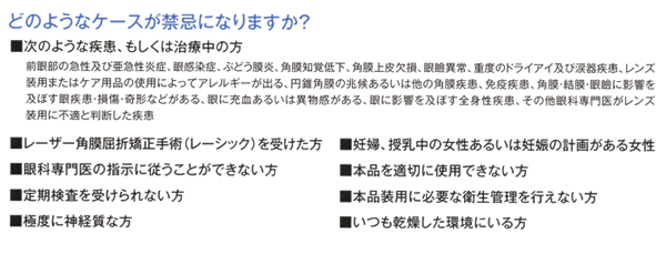 オルソケラトロジーをしてはいけない人の主な例は以下のとおりです。
